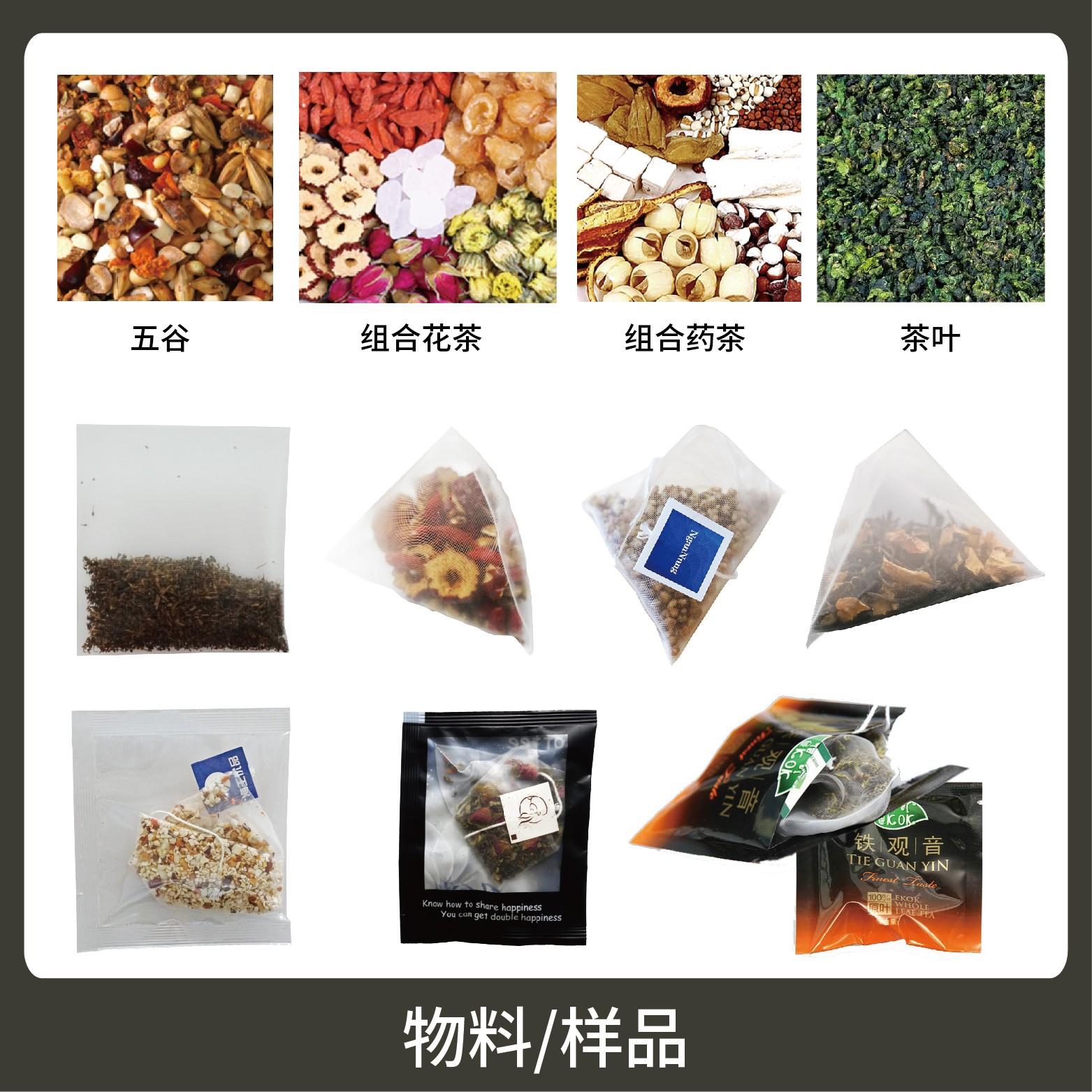 適用于綠茶、紅茶、花茶、咖啡、中國茶、健康茶、中藥茶、顆粒等內(nèi)外袋一次性包裝機(jī)。